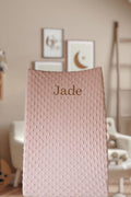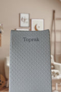 Wat deze hoes écht bijzonder maakt? Je kunt hem laten personaliseren met de naam van je baby – stijlvol geborduurd voor een unieke en liefdevolle touch op de commode.