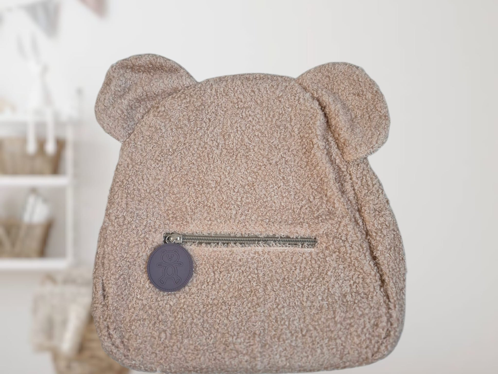 Deze onweerstaanbaar zachte teddy rugtas is dé must-have voor kleine avonturiers. Gemaakt van knuffelzacht bouclé-materiaal en voorzien van schattige berenoortjes, is deze rugzak niet alleen praktisch maar ook een echte eyecatcher. En het leukste? Je kunt de rugtas laten borduren met de naam van je kindje – zo wordt het écht hun eigen tasje!